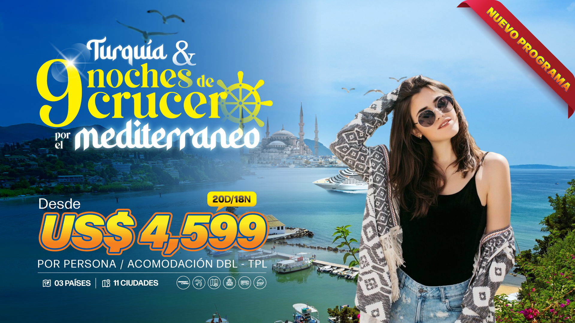 Mega Travel presenta un producto especial para aquellos aventureros que les apasiona el sureste de Europa. El itinerario ofrece una experiencia mágica por nueve noches en un crucero por el Mediterráneo, recorriendo Turquía, Grecia e Italia.